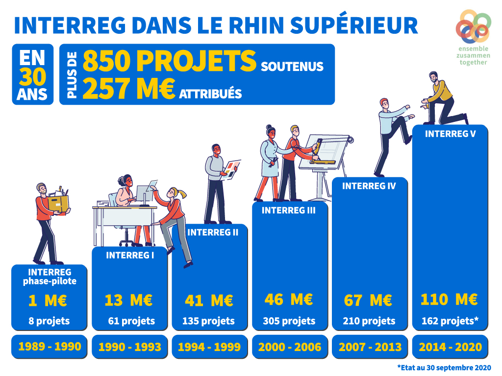 Depuis 30 ans, le programme Interreg Rhin Supérieur a cofinancé plus de 800 projets, dont environ 300 microprojets depuis 2002, avec plus de 255 Millions d’Euros.