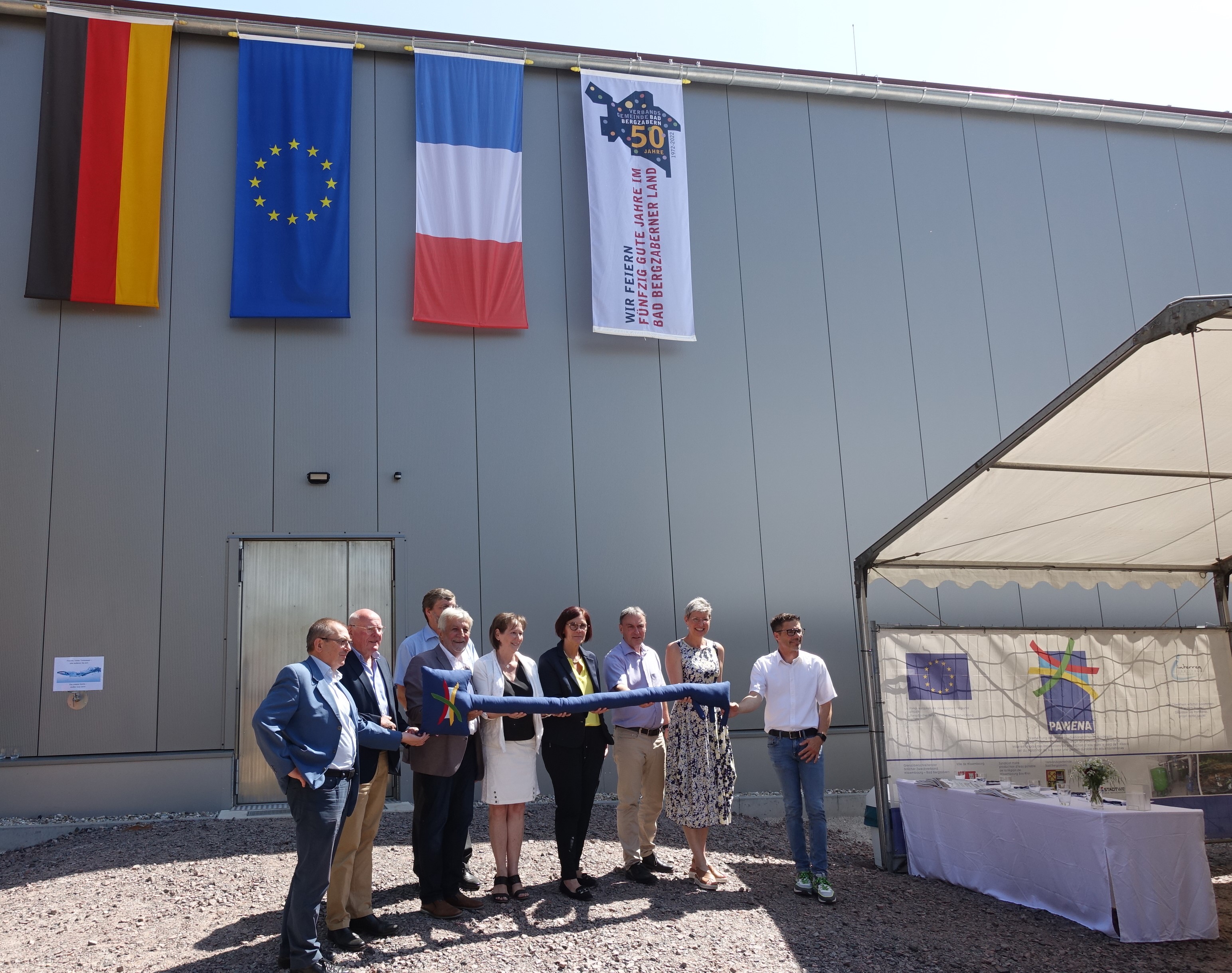 Le 20 mai, les partenaires du projet et les élus du territoire transfrontalier se sont réunis à Steinfeld, en Allemagne. Ils inauguraient la nouvelle usine de production d’eau potable. Celle-ci est constituée de matériaux innovants, assurant une pérennité d’au moins 30 ans de ces installations.