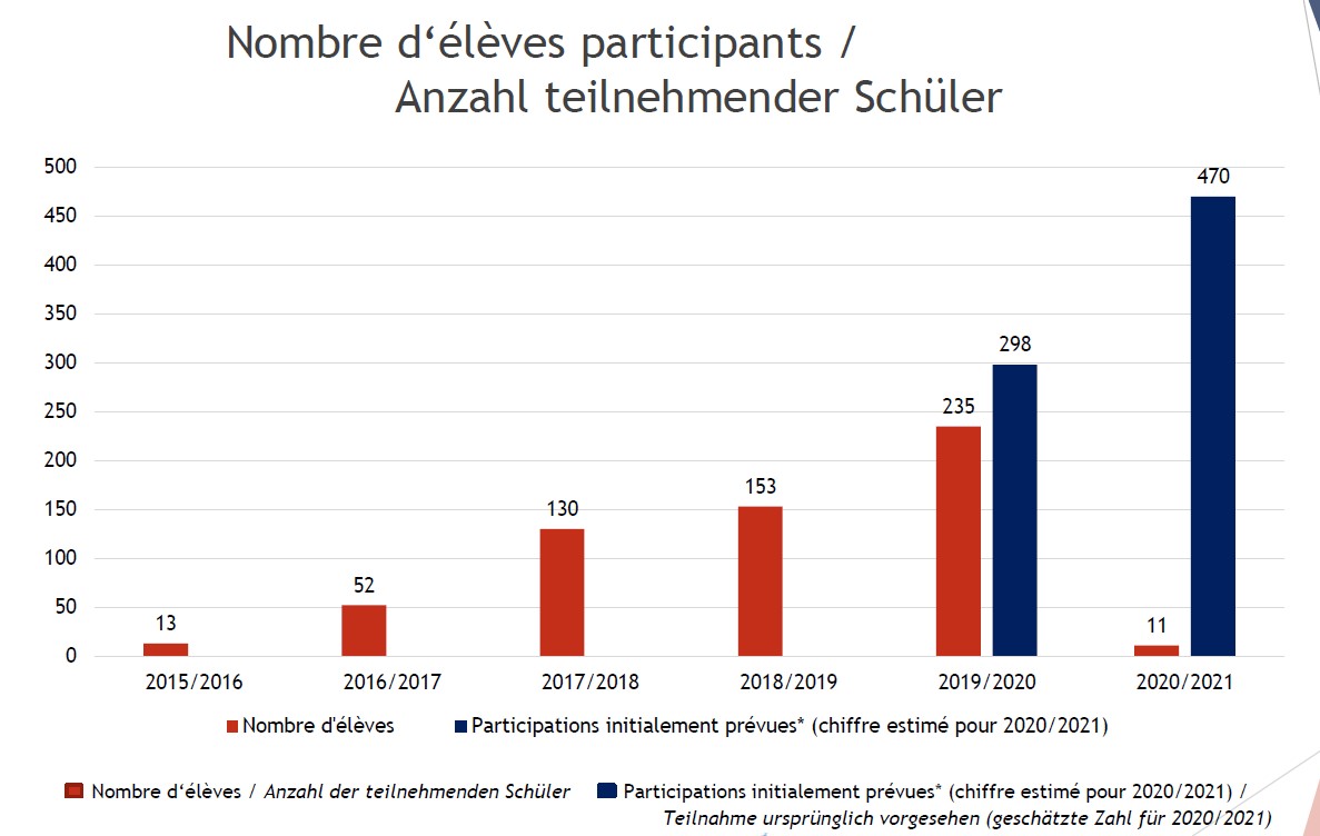 Après deux ans de croissance exponentielle en terme de participation, la crise sanitaire a naturellement changé la donne et ralenti considérablement les progrès accomplis. De nombreux stages prévus furent annulés, et les établissements scolaires devinrent prudents quant à l’organisation de nouveaux séjours pour l’année scolaire 2020/2021.